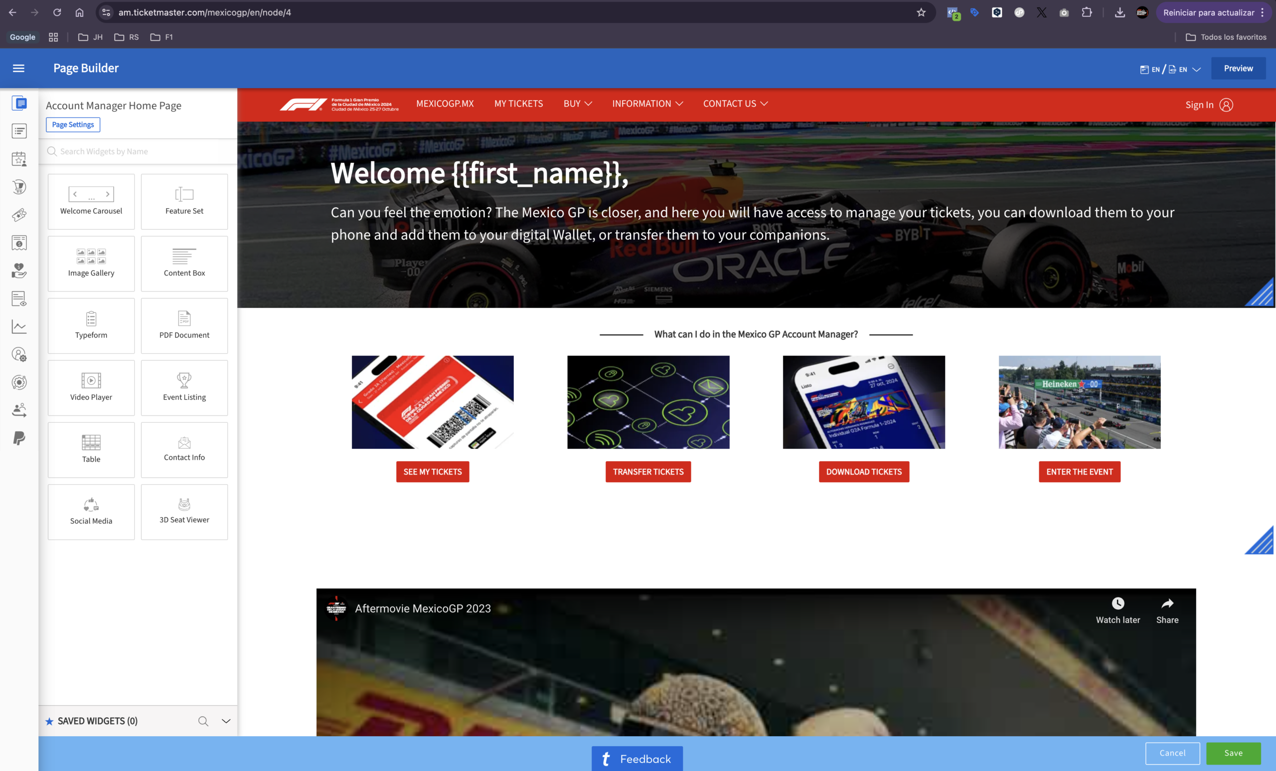 Plataforma de Ticketing F1 México GP | Ticketmaster Account Manager